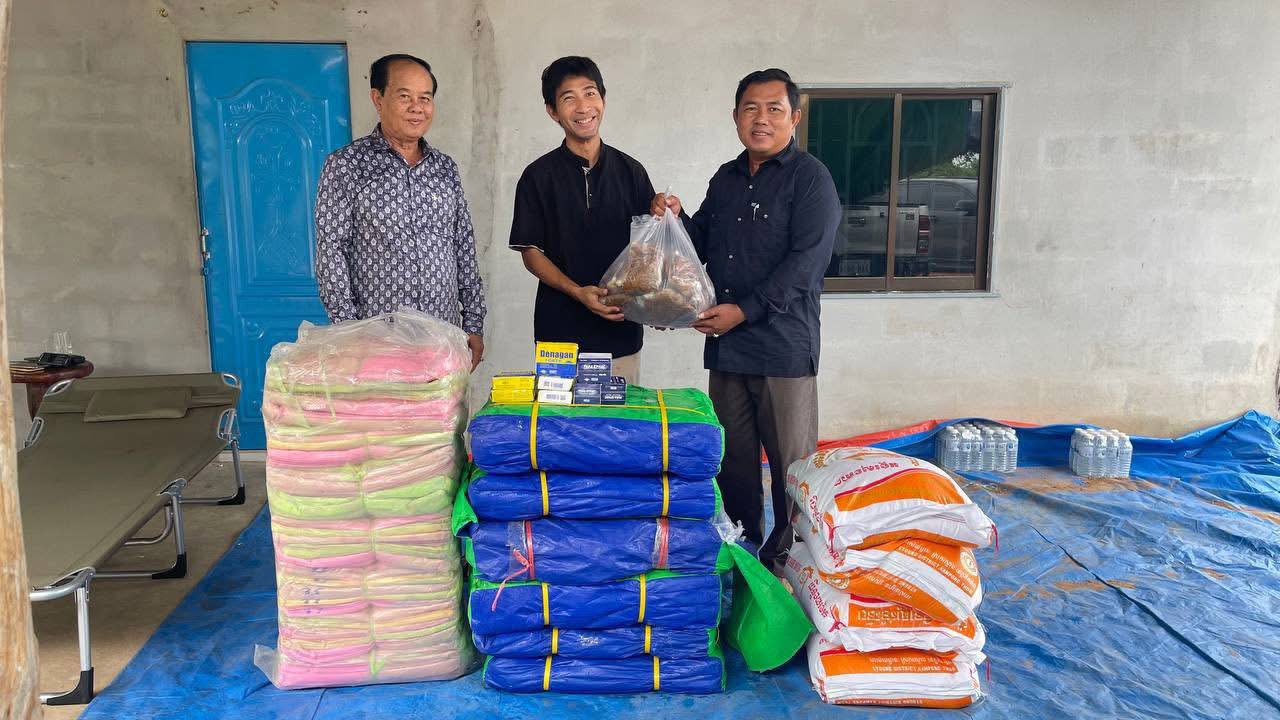 អង្ករ ចំនួន ៤ការ៉ុង(២៥kg/ការ៉ុង) តង់ចំនួន៦ដុំ មុង១ដុំធំ ឆៃប៉ូវ ១ថង់ ថ្នាំPara-Ephac ចំនួន៤ប្រអប់ ថ្នាំDenagan ចំនួន៥ប្រអប់ មកចែកជូនគ្រួសារពលរដ្ខដែលត្រូវយោធាថៃហ៊ុមព័ទ្ធបន្លាលួសនិងកង់ឡានយកដី និងផ្ទះចំនួន១២គ្រួសារ ដែលមានមនុស្សរាយចំនួន៥៩នាក់ ។