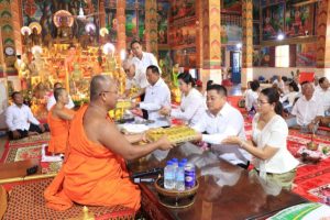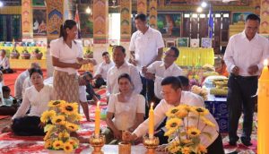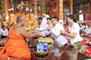 ក្នុងឱកាសនោះ លោកស្នងការ និងលោកស្រី បានបូជាផ្កាភ្ញី ទៀនធូប និងបានវេរគ្រឿងទ័យទានភេសជ្ជៈ ព្រមទាំងបច្ច័យមួយចំនួនប្រគេនដល់ព្រះសង្ឃដែលគង់ចាំព្រះវស្សា ដើម្បីចូលរួមទ្រទ្រង់វិស័យព្រះពុទ្ធសាសនា។