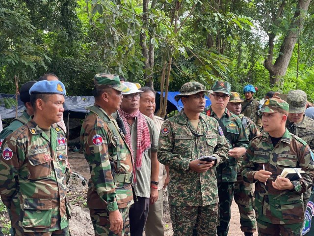 ដោយ : ភ្នំធំ / បន្ទាយមានជ័យ :នៅព្រឹកថ្ងៃចន្ទ ទី១៥ ខែកញ្ញា ឆ្នាំ២០២៥ ក្រសួងការពារជាតិ នៃព្រះរាជាណាចក្រកម្ពុជា បានសម្របសម្រួលជូនក្រុមអ្នកសង្កេតការណ៍អន្តរកាល (IOT) ដឹកនាំដោយ វរសេនីយ៍ឯក Mohd Farid Bin Mohd Yusop ប្រធានក្រុមអ្នកសង្កេតការណ៍អន្តរកាល ទីស្នាក់ការ២ ប្រចាំខេត្តបន្ទាយមានជ័យ អញ្ជើញចុះពិនិត្យទីតាំងជាក់ស្តែង ក្រោយបទឈប់បាញ់ នៅច្រកបឹងត្រកួន ខេត្តបន្ទាយមានជ័យ ដើម្បីសង្កេតការណ៍ ផ្ទៀងផ្ទាត់ និងរាយការណ៍។