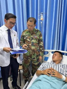 ករណីពាក់ព័ន្ធ គ្រូពេទ្យកំពុងព្យាបាលយ៉ាងយកចិត្តទុកដាក់ចំពោះអ្នកជំងឺ សួន វណ្ណ ដែលរងគ្រោះដោយគ្រាប់បែកផ្សែង បង្កឡើងដោយទាហានថៃ កាលពីថ្ងៃទី១៧ ខែកញ្ញា ឆ្នាំ២០២៥ នៅភូមិព្រៃចាន់ ឃុំអូរបីជាន់ ស្រុកអូរជ្រៅ ។