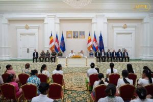 ដោយ : បន្ទាយ / ភ្នំធំ :សម្តេចធិបតីហ៊ុន ម៉ាណែត នាយករដ្ឋមន្ត្រីនៃរាជរដ្ឋាភិបាលកម្ពុជានិងលោកជំទាវបណ្ឌិតពេជ្រ ចន្ទមុនី បានអញ្ជើញជួបសំណេះសំណាលជាមួយគ្រួសារសារយោធិន១៨រូប ដែលកំពុងស្ថិតនៅក្រោមការឃុំខ្លួនរបស់កងទ័ពថៃ។