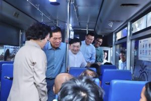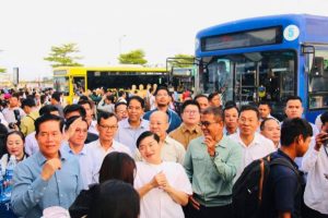 គេឃើញកាលពីថ្ងៃទី២០ខែកញ្គាឆ្នាំ២០២៥ លោកឃួង ស្រេង អភិបាលរាជធានីភ្នំពេញ.លោកហេង សួរ រដ្ឋមន្ត្រីក្រសួងការងារនិងមន្ត្រីពាក់ព័ន្ធបានអញ្ជើញទៅទទួលស្វាគមន៍និងជូនដំណើរ ជូនពរដល់អ្នកដំណើរដែលធ្វើដំណើរតាមរថយន្តក្រុងរបស់រដ្ឋបាលរាជធានីស្របតាមការណែនាំនិងអនុសាសន៍របស់សម្តេចហ៊ុន ម៉ាណែត នាយករដ្ឋមន្ត្រីនៃរាជរដ្ឋាភិបាលកម្ពុជាបន្តដាក់រថយន្តក្រុងអោយអ្នកដំណើរជិះដោយឥតគិតប្រាក់( Free) ពីរាជធានាិភ្នំពេញទៅខេត្ត២៤លើ២៥ ។