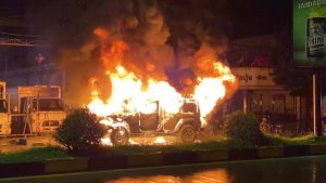 រួចរថយន្ដក៏មានការឆ្លងចរន្តអគ្គិសនីបង្កចេញជាអណ្ដាតភ្លើងឆាបឆេះយ៉ាងសន្ធោសន្ធៅ។