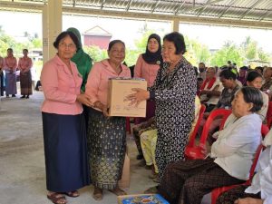 (កំពង់ធំ)៖ លោកជំទាវ ឃួន ឃុនឌីសមាជិកព្រឹទ្ធសភា និងជាអនុប្រធានកិត្តិយសគណៈកម្មាធិការសមាគមនារីកម្ពុជាដើម្បីសន្តិភាពនិងអភិវឌ្ឍន៍ខេត្តកំពង់ធំ លោកជំទាវ មាណ ណាវី សមាជិកព្រឹទ្ធសភានិងលោកជំទាវ យស ថានារី សមាជិករដ្ឋសភា អញ្ជើញចែកចង្ក្រាន្តសន្សំសំចៃថាមពលជូនដល់ពលរដ្ឋ ៧១៧គ្រួសារ ក្នុងឃុំបឹង ស្រុកបារាយណ៍ ខេត្តកំពង់ធំ ថ្ងៃទី២៣ ខែសីហា ឆ្នាំ២០២៥ នៅវត្តបឹងខាងត្បូង។