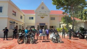 ក្រុងប៉ោយប៉ែត៖ កម្លាំងនគរបាលក្រុងប៉ោយប៉ែត អនុវត្តន៍តាមបទបញ្ជារបស់លោកឧត្តមសេនីយ៍ទោ សិទ្ធិ ឡោះ ស្នងការនៃស្នងការដ្ឋាននគរបាលខេត្តបន្ទាយមានជ័យ ដឹកនាំដោយលោកវរសេនីយ៍ទោ ព្រហ្ម ពិសិដ្ឋ អធិការនៃអធិការដ្ឋាននគរបាលក្រុងប៉ោយប៉ែត បានបង្ក្រាប និងឃាត់ខ្លួនជនសង្ស័យចំនួន ១០នាក់ ដែលពាក់ព័ន្ធនឹងករណីលួចមានស្ថានទម្ងន់ទោស “កាប់យកម៉ូតូ” ៣ករណី នៅតំបន់ផ្សេងៗគ្នា ក្នុងក្រុងប៉ោយប៉ែត។