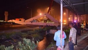 កាសែតថៃក្នុងស្រុកបានផ្សាយថា: ធ្នឹមស្ពានបេតុងទម្ងន់១១៦តោន ត្រូវបាក់ធ្លាក់ទៅលើរថយន្តស្ទូច និងរថយន្តសណ្តោង ធ្វើឲ្យកកស្ទះចរាចរណ៍ និងបង្កការភ្ញាក់ផ្អើលទាំងយប់។