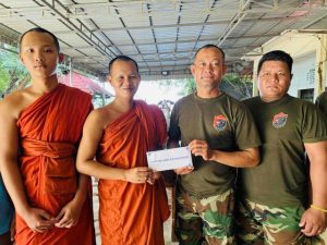 ហេតុនេះ ទើបលោកកែសួន សុភាព លោកស្រីផ្ទាល់និងសប្បុរសជនប្រគេននូវសម្ភារ: ថវិកាមកប្រគេនព្រះអង្គដើម្បីព្រះបាននាំបន្តទៅប្រគល់ដលើដៃកងទ័ព នគរបាលនិងពលរដ្ឋនៅជួរមុខព្រំដែនកម្ពុជា ថៃ ៕