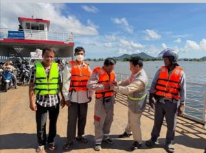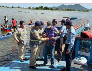 កំពង់ឆ្នាំង(:)នៅព្រឹកថ្ងៃទី២០ ខែតុលា ឆ្នាំ២០២៥ ការិយាល័យដឹកជញ្ជូនផ្លូវទឹក និងកំពង់ផែ នៃមន្ទីរសាធារណការ និងដឹកជញ្ជូនខេត្តកំពង់ឆ្នាំង ដឹកនាំដោយលោក កែវ ចន្ថា ប្រធានការិយាល័យ បានសហការជាមួយកម្លាំងនគរបាលចរាចរណ៍ផ្លូវទឹកខេត្ត និងតំណាងក្រុមហ៊ុនកាណូតដរទទឹង ចុះផ្សព្វផ្សាយច្បាប់ចរាចរណ៍ផ្លូវទឹក និងចែកអាវពោងសុវត្ថិភាពចំនួន ៥០ អាវ ដល់អ្នកបើកនាវា អ្នកបើកទូកបាឡាស្មាច់ និងប្រជាពលរដ្ឋនៅភូមិចុងកោះ សង្កាត់ផ្សារឆ្នាំង ក្រុងកំពង់ឆ្នាំង ខេត្តកំពង់ឆ្នាំង។