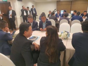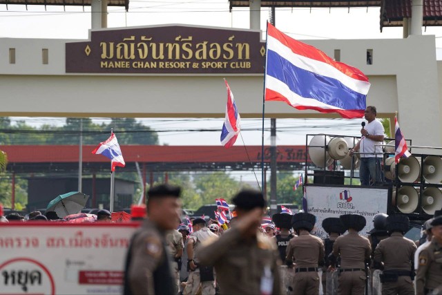 ខណ: ពេលកិច្ចប្រជុំកំពុងដំណើរការ ពលរដ្ឋថៃបានប្រមូលផ្តុំគ្នាប្រមាណ២០នាក់ នាំគ្នាស្រែកតវ៉ាប្រឆាំងនៅខាងក្រៅបរិវេណកិច្ចប្រជុំ JBC នេះ.នៅខេត្តចន្ទបុរី ប្រទេសថៃ ។