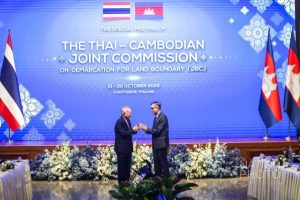 សូមរំលឹកថា កិច្ចប្រជុំពិសេសគណៈកម្មការព្រំដែនចម្រុះខណ្ឌសីមាព្រំដែនគោក ( JBC) កម្ពុជា-ថៃ នៅខេត្តចន្ទបុរី ប្រទេសថៃធ្វើម្ចាស់ផ្ទះ មានរយៈពេល ២ថ្ងៃ ពីថ្ងៃទី២១ – ២២ ខែតុលា ឆ្នាំ២០២៥ ។