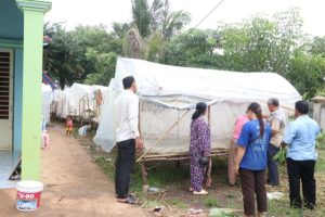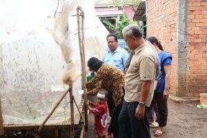 (កំពង់ធំ)៖ លោក ហាក់ ម៉ុងហួត អភិបាលស្រុកតាំងគោក នាព្រឹកថ្ងៃទី០២ ខែវិច្ឆិកា ឆ្នាំ២០២៥នេះ បានដឹកនាំមន្ត្រីចុះពិនិត្យជាក់ស្តែងលើសកម្មភាពចិញ្ចឹមកណ្តូបបន្ថែមពីលើមុខរបរប្រចាំថ្ងៃ របស់ប្រជាកសិករចំនួន៥៣គ្រួសារ នៅក្នុងភូមិទោង ឃុំស្រឡៅ ស្រុកតាំងគោក ខេត្តកំពង់ធំ ដែលបានចិញ្ចឹមចំនួនជិត១០០ទ្រុង ដើម្បីរកចំនូលបន្ថែមសម្រាប់ទ្រទ្រង់ដល់ជីវភាពប្រចាំថ្ងៃ។