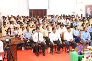 ឯកឧត្តម នួន ផារ័ត្ន អភិបាលខេត្តកំពង់ធំបានថ្លែងនូវមតិសំណេះសំណាល និងបង្ហាញពីសារៈសំខាន់នៃការសិក្សា និងការងារស្ម័គ្រចិត្ត ដោយបានលើកយកពីបទពិសោធន៍ផ្ទាល់ដល់យុវជនប្រកបដោយភាពស្និទ្ធស្នាលផ្សារភ្ជាប់ជាមួយការអប់រំឱ្យយុវជនមានសីលធម៌ សុជីវធម៌ និងរស់នៅជាពលរដ្ឋដ៏មានតម្លៃក្នុងសង្គម និងឱ្យយុវជនចេះគិតពិចារណា ថ្លឹងថ្លែងរកខុសត្រូវ មុនពេលផ្សព្វផ្សាយព័ត៌មាន ស្របពេលដែលបច្ចុប្បន្ន យុវជនភាគច្រើនជាអ្នកប្រើប្រាស់បណ្តាញសង្គម។
