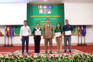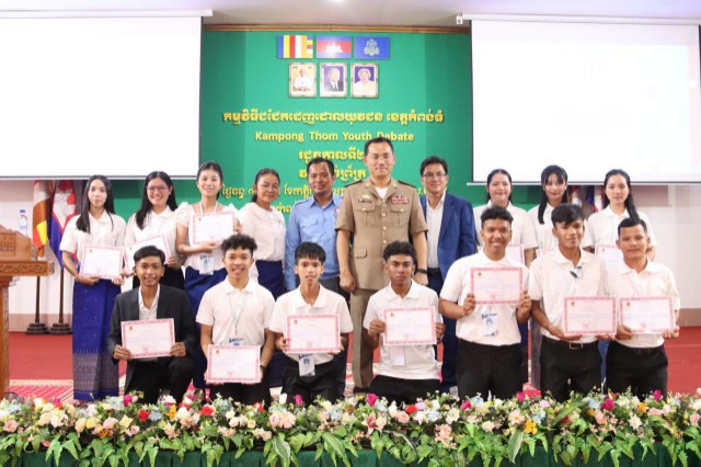 (កំពង់ធំ)÷ នៅថ្ងៃទី០៣ ខែវិច្ឆិកា ឆ្នាំ២០២៥ ការិយាល័យយុវជន នៃមន្ទីរអប់រំ យុវជន និងកីឡាខេត្តកំពង់ធំ បានរៀបចំឡើងនូវការប្រកួតវគ្គផ្តាច់ព្រ័ត្រ នៃកម្មវិធីជជែកដេញដោលយុវជនខេត្តកំពង់ធំ រដូវកាលទី២ ឆ្នាំ២០២៥ ក្រោមប្រធានបទ(ការអប់រំសីលធម៌ និងចរិយាធម៌ដល់យុវជន តាមរយៈព្រះពុទ្ធសាសនា ជាយន្តការគន្លឹះធ្វើឱ្យសង្គមពោរពេញដោយសុខសន្តិភាព) ដែលជាជំនួបរវាងក្រុមស្រប វិទ្យាល័យជាស៊ីមកំពង់ថ្ម និងវិទ្យាល័យស្ទឹងសែន ជាក្រុមបដិសេធ នៅសាលប្រជុំ Aនៃសាលាខេត្តកំពង់ធំ