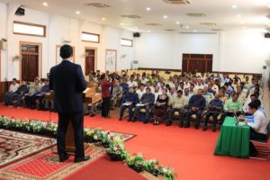 ឯកឧត្តម ឡោ ដាវុធ រដ្ឋលេខាធិការ ក្រសួងរៀបចំដែនដី នគរូបនីយកម្ម និងសំណង់ សូមថ្លែងអំណរគុណយ៉ាងជ្រាលជ្រៅជូនចំពោះក្រុមការងារក្រសួងរៀបចំដែនដី នគរូបនីយកម្ម និងសំណង់ រដ្ឋបាលខេត្តកំពង់ធំ មន្ទីររៀបចំដែនដី នគរូបនីយកម្ម សំណង់ និងសុរិយោដី ខេត្តកំពង់ធំ មន្ទីរជំនាញពាក់ព័ន្ធ និងអាជ្ញាធរមូលដ្ឋាន ដែលជួយសម្របសម្រួលការងារ និងបានចូលរួមយ៉ាងសស្រាក់សស្រាំនៅក្នុងដំណើរ ការប្រមូល និងផ្ទៀងផ្ទាត់ទិន្នន័យនារយៈពេលកន្លងទៅនេះ។ ចូលរួមចំណែកជាមូលដ្ឋានដល់ការរៀបចំផែនការអភិវឌ្ឍឃុំ នៅក្នុងតំបន់ការពារបឹងទន្លេសាប ដើម្បីធានា បានការអភិវឌ្ឍមួយដែលប្រកបដោយចីរភាព និងចំគោលដៅ ថែមទាំងត្រូវបានប្រើប្រាស់ដោយការចូលរួម និងគាំទ្រយ៉ាងពេញទំហឹងពីរដ្ឋបាលខេត្តកំពង់ធំ អាជ្ញាធរស្រុក/ឃុំ/សង្កាត់ និងពីគ្រប់ភាគីពាក់ព័ន្ធទាំងអស់៕