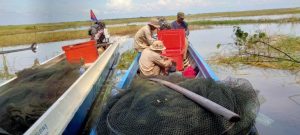 កំពង់ឆ្នាំង៖ នៅថ្ងៃចន្ទ ទី១០ ខែវិច្ឆិកា ឆ្នាំ២០២៥ កម្លាំងខណ្ឌរដ្ឋបាលជលផលកំពង់ឆ្នាំង ដឹកនាំដោយលោក លី ឡា បានចុះប្រតិបត្តិការបង្ក្រាបបទល្មើសនេសាទនៅចំណុចចុងបឹងវាលស្រងែ ភូមិស្លត ឃុំផ្លូវទូក ស្រុកកំពង់លែង ខេត្តកំពង់ឆ្នាំង ដោយអនុវត្តតាមបទបញ្ជារបស់ឯកឧត្តមអភិបាលខេត្ត។