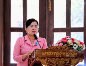 ថ្លែងក្នុងឱកាសនោះ លោកជំទាវ បានពាំនាំមកនូវការផ្តាំផ្ញើសាកសួរសុខទុក្ខពីសំណាក់សម្ដេចតេជោ ហ៊ុន សែន ប្រធានព្រឹទ្ធសភា និងសម្ដេចកិត្តិសិង្គហបណ្ឌិត ម៉ែន សំអន ប្រធានសមាគមនារីដើម្បីសន្តិភាព និងអភិវឌ្ឍន៍កម្ពុជា ដែលលោកតែងគិតគូរពីសុខទុក្ខ និងដោះស្រាយរាល់ទុក្ខលំបាករបស់ប្រជាពលរដ្ឋ ពិសេសកន្លងមកសម្ដេចតែងតែជួយគាំទ្រដល់សកម្មភាពរបស់ស្ត្រីគ្រប់កាលៈទេសៈទាំងអស់។