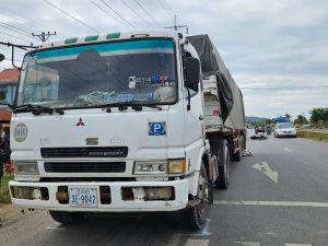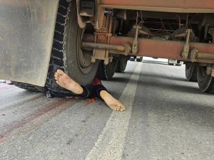 ខណ:នោះដួលចូលកង់ក្រោយរថយន្តធុនធំម៉ាក់FUSOពាក់ផ្លាក់លេខភ្នំពេញ3E-9042និងរម៉កក្រោយពាក់ផ្លាក់លេខព្រៈសីហនុ 4A-3215បណ្តាលរថយន្តកិនស្លាប់ភ្លាមៗអ្នកបើកបររថយន្តគេចខ្លួន។