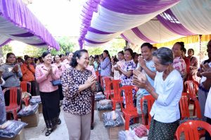 ថ្លែងក្នុងឱកាសនោះ លោកជំទាវ បាននាំយកប្រសាសន៍ផ្ដាំផ្ញើសាកសួរសុខទុក្ខ និងប្រកបដោយក្តីនឹករលឹកពីសំណាក់ សម្តេចអគ្គមហាសេនាបតីតេជោ ហ៊ុន សែន ប្រធានព្រឹទ្ធសភា និងសម្តេចកិត្តិសង្គហបណ្ឌិត ម៉ែន សំអន ប្រធានគណៈកម្មាធិការសមាគមនារីកម្ពុជាដើម្បីសន្តិភាព និងអភិវឌ្ឍន៍។