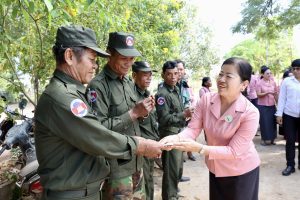 បន្ទាប់មកលោកជំទាវ បានលើកឡើងអំពីសភាពការណ៍ព្រំដែន ជាពិសេសផ្លែផ្កាជាវិជ្ជមានគួរជាទីមោទនៈ នៃយុទ្ធសាស្ត្រស្ងាត់តែមិននៅស្ងៀម របស់សម្តេចអគ្គមហាសេនាបតីតេជោ សម្តេចមហាបវរធិបតី ដែលនាំកម្ពុជាឱ្យចៀសផុតនៅដំណាក់កាលនេះ ពីវិនាសកម្មដ៏ធំធេង ដែលកើតចេញពីសមរភូមិសង្គ្រាមរវាងថៃ និងកម្ពុជា ដោយបានដឹកដៃភាគីថៃ ចូលក្នុងសមរភូមិការទូត ដោយមានអន្តរជាតិដឹងលឺ និងសមរភូមិផ្លូវច្បាប់ ដែលនេះជាសមរភូមិល្អបំផុត ដើម្បីធានាបាននូវការការពារបូរណភាពទឹកដីរបស់កម្ពុជា ដោយមិនមានការបង្ហូរឈាម និងសំណូមពរឱ្យពុកម៉ែបងប្អូនទាំងគ្នា ជឿទុកចិត្តលើការដឹងនាំរបស់សម្តេចទាំងទ្វេ ក្នុងការនាំនាវាកម្ពុជាឆ្ពោះទៅរកសុខសន្តិភាព និងភាពជឿនលឿន។ដោយ សុ អ៊ួង សុផាត