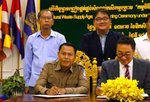 (កំពង់ធំ)៖លោក លី សុងហូ ប្រធានក្រុមហ៊ុន KPT Green Power លោក ដូង ច័ន្ទដារ៉ា អភិបាលរងស្រុកកំពង់ស្វាយ និងលោក ថនស៊ី ពុទ្ធា អភិបាលរងស្រុកប្រាសាទសំបូរ អញ្ចើញចុះហត្ថលេខាលើកិច្ចព្រមព្រៀងផ្គត់ផ្គង់សំណល់កសិកម្មក្រោម កម្មវិធីថាមពលជីវម៉ាសប្រកបដោយចីរភាពនៅកម្ពុជា (NSBPC) ដែលកម្មពិធីនេះប្រព្រិត្តិទៅនៅសាលប្រជុំនៃមន្ទីរបរិស្ថានខេត្តកំពង់ធំ ថ្ងៃទី១៨ ខែធ្នូ ឆ្នាំ២០២៥ ។