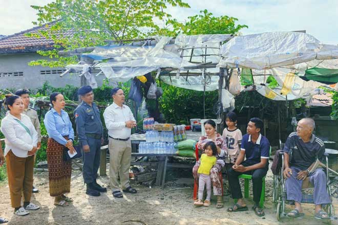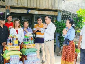 ខេត្តក្រចេះ ៖ លោក គង់ មេត្តា អភិបាលស្រុកសំបូរ ខេត្តក្រចេះ និងក្រុមការងារ បានអញ្ជើញចុះជួបសួរសុខទុក្ខនិងយកអំណោយជូនដល់វរៈកងទ័ពជួរមុខម្នាក់ ដែលជាវរៈកងទ័ព ឈរជើងទប់ទល់ខ្មាំងនៅចំនុចប្រាសាទតាក្របី បានរងរបួស កាលពីថ្ងៃទី៩ ខែធ្នូ ឆ្នាំ២០២៥ ដោយគ្រាប់ផ្លោងខ្មាំងសៀម និងបានព្យាបាលនៅមន្ទីរពេទ្យខេត្តសៀមរាប ហើយពេលនេះកំពុងស្នាក់នៅបណ្ដោះអាសន្ន នឹងកំពុងបន្តមកសម្រាកព្យាបាលនៅផ្ទះម្ដាយ នៅក្នុងឃុំសំបូរ ស្រុកសំបូរ។ ក្នុងពេលនោះដែរក៏បាននាំយកអំណោយ ស្បៀងអាហារ គ្រឿងឧបភោគបរិភោគ សម្ភារៈប្រើប្រាស់ និងថវិកាមួយចំនួន ទៅប្រគល់ជូនដល់គ្រួសារវរៈកងទ័ពចំនួន ០១គ្រួសារ និងគ្រួសារភៀសសឹក ចំនួន ៦គ្រួសារផ្សេងទៀត ដែលកំពុងស្នាក់នៅបណ្ដោះអាសន្ននៅក្នុងឃុំសំបូរ ស្រុកសំបូរ ។ នេះតាមការឱ្យដឹងពីលោក គង់ មេត្តា អភិបាលស្រុកសំបូរ ខេត្តក្រចេះ។