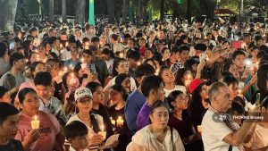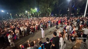 នាយប់ថ្ងៃទី២៣ ខែធ្នូ ឆ្នាំ២០២៥ ពលរដ្ឋជាច្រើនបានជួបជុំគ្នាអុជទៀនដើម្បីសន្តិភាព នៅមុខផ្ទាំងគំនូរដែលបង្ហាញពីសោកនាដកម្មនៃសង្គ្រាម បង្កឡើងដោយការឈ្លានពានរបស់កងទ័ពថៃ មកលេីកម្ពុជា