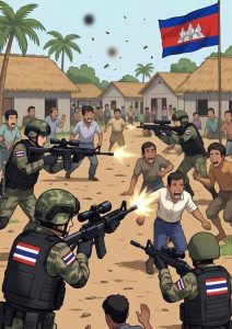 ទាហានឈុតខ្មៅថៃព្រៃផ្សៃយង់ឃ្នងណាស់ នៅតំបន់អូរស្មាច់ យប់មិញថ្ងៃទី២៣ខែធ្នូឆ្នាំ២០២៥ លបចូលភូមិដ្ឋាននិងចាប់ប្រជាជនខ្មែរ៣នាក់ ចងស្លាបសេក ចងក្រណាត់បិទមុខ វាយដុំ និងចាប់បង្ខំសួរចម្លើយ ប្លន់ទ្រព្យ នៅភូមិ/សង្កាត់អូរស្មាច់ក្រុងសំរោងខេត្តឧត្តរមានជ័យ។