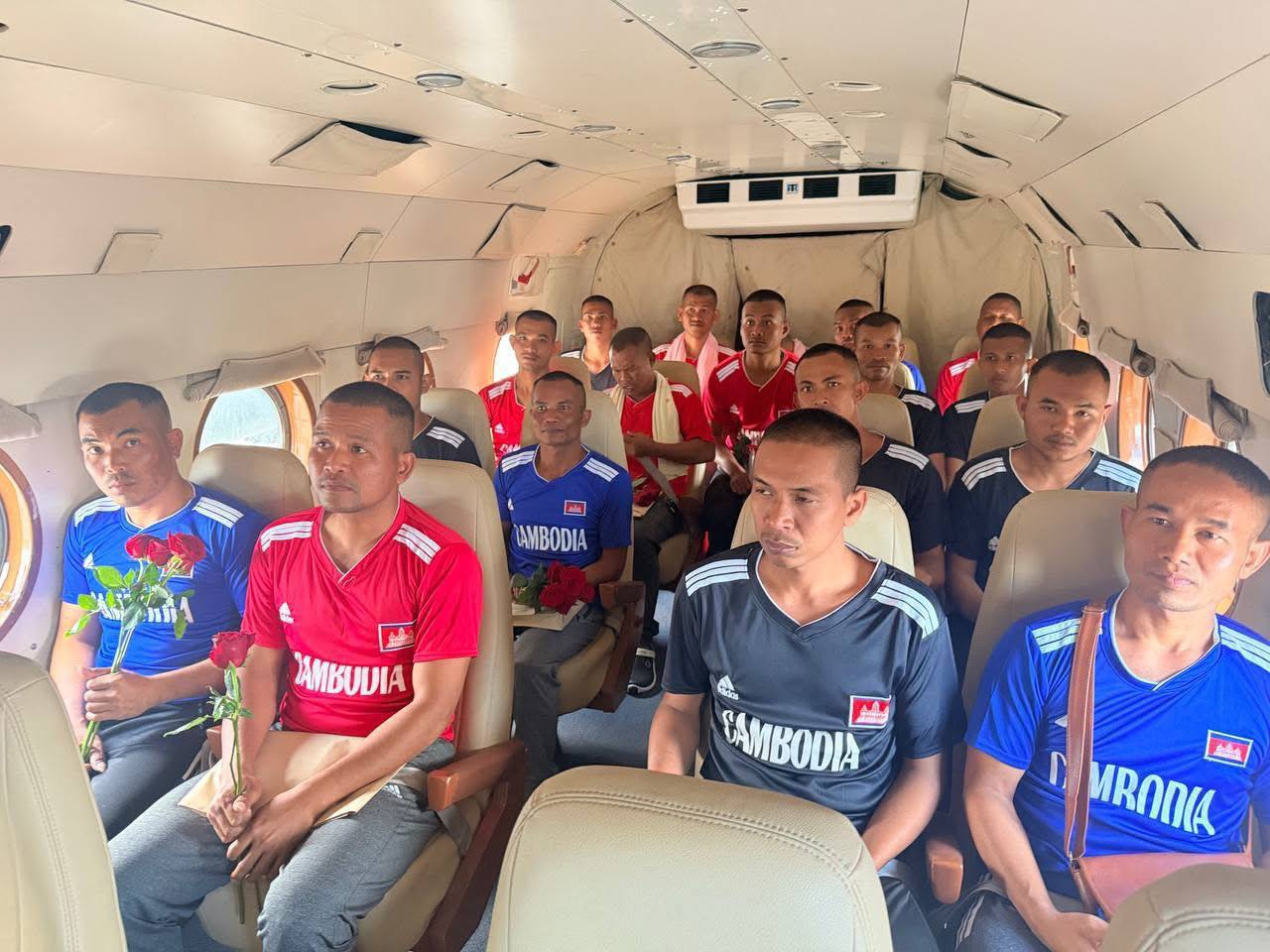 វីរកងទ័ពកម្ពុជា ទាំង១៨រូប ត្រូវបានដឹកតាមរថយន្ត ពីច្រកព្រំ ខេត្តប៉ៃលិន ចូលទៅខេត្តបាត់ដំបង មុននឹងបន្តដំណេីរតាមឧទ្ធម្ភាគចក្រមករាជធានីភ្នំពេញ។