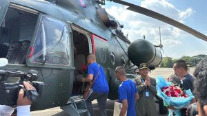 ដោយ : ភ្នំធំ / បាត់ដំបង – ភ្នំពេញ :វីរកងទ័ព ១៨នាក់ បានធ្វើដំណើរតាមឧទ្ធម្ភាគចក្រពីព្រលានយន្តហោះបែកចានក្រុងនិងខេត្តបាត់ដំបង ឆ្ពោះមកកាន់ព្រលានយន្តហោះអន្តរជាតិភ្នំពេញហៅពោធិ៍ចិនតុងហើយ ។ក្រុមគ្រួសារ ឪពុកម្តាយ ប្រពន្ធ កូន និងសាច់ញាតិរបស់វីរកងទ័ពទាំង១៨រូប បាននៅរង់ចាំទទួលស្វាគមន៍ជាស្រេចដែរ។