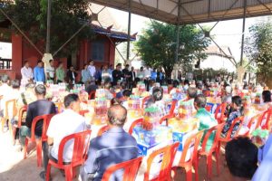 ជាកិច្ចបញ្ចប់ លោកឧត្តមសេនីយ៍ទោ ស្នងការ បានប្រគល់គ្រឿងឧបភោគបរិភោគជូនប្រជាពលរដ្ឋចំនួន ១០០គ្រួសារ មកពីឃុំនីពេជ និងឃុំត្បែង ដោយក្នុងមួយគ្រួសារទទួលបាន៖ អង្ករ ២៥គីឡូក្រាម, មីជាតិ ១កេស, ទឹកបរិសុទ្ធ ១កេស, ទឹកត្រី ១យួរ និងថវិកា ៥០,០០០រៀល៕ដោយអ៊ួង សុផាត