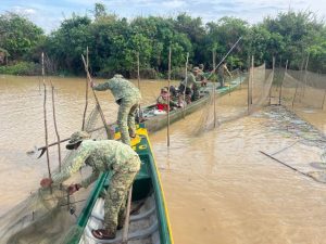 ខេត្តកំពង់ធំ៖ អនុវត្តតាមបទបញ្ជាដ៏ខ្ពង់ខ្ពស់របស់ សម្តេចមហាបវរធិបតី ហ៊ុន ម៉ាណែត នាយករដ្ឋមន្ត្រីនៃកម្ពុជា និងការណែនាំផ្ទាល់ពីគណៈបញ្ជាការឯកភាពខេត្ត, លោកឧត្តមសេនីយ៍ទោ សោម ស៊ុន មេបញ្ជាការតំបន់ប្រតិបត្តិការសឹករងកំពង់ធំ បានដាក់បទបញ្ជាយ៉ាងម៉ឺងម៉ាត់ដល់កងកម្លាំងដែលប្រចាំការនៅតាមទីបញ្ជាការស្រាល ត្រូវបន្តសកម្មភាពទប់ស្កាត់ និងបង្ក្រាបបទល្មើសនេសាទខុសច្បាប់ក្នុងភូមិសាស្ត្រទទួលខុសត្រូវឱ្យដូចភ្លៀងរលឹម។