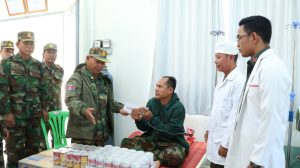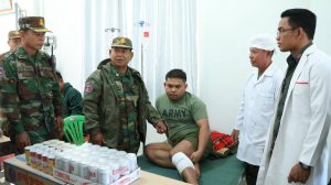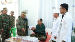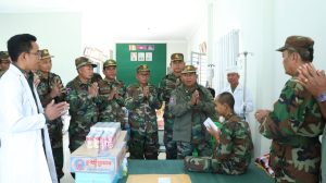 ខេត្តកំពង់ធំ៖ នៅព្រឹកថ្ងៃទី០៨ ខែមករា ឆ្នាំ២០២៦ ឧត្ដមសេនីយ៍ទោ សោម ស៊ុន មេបញ្ជាការតំបន់ប្រតិបត្តិការសឹករងកំពង់ធំ បានដឹកនាំសហការីអញ្ជើញចុះសាកសួរសុខទុក្ខវីរយុទ្ធជនចំនួន ០៣រូប ដែលបានរងរបួសក្នុងសមរភូមិការពារបូរណភាពទឹកដី និងកំពុងសម្រាកព្យាបាលបន្តនៅផ្នែកគិលានដ្ឋាន នៃបញ្ជាការដ្ឋានតំបន់ប្រតិបត្តិការសឹករងកំពង់ធំ។