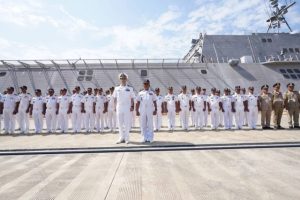 ដំណើរមដល់នៃនាវាចម្បាំងអាមេរិក ត្រូវបានទទួលស្វាគមន៍យ៉ាងកក់ក្តៅដោយឧត្តមនាវីត្រី អុិន សុខេមរា មេបញ្ជាការរង មូលដ្ឋានសមុទ្ររាម កងទ័ពជើង។