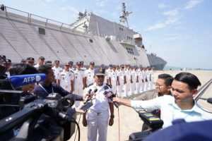 នាវាកងទ័ពជើងអាមេរិកដែលចូលចតនៅផែសមុទ្ររាមនេះ មានឈ្មោះ USS CINCINNATI (LCS 20)។