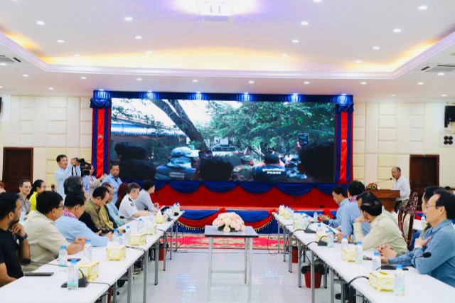 ដោយ : ភ្នំធំ / ព្រំដែនកម្ពុជា ថៃ-បន្ទាយមានជ័យ :នៅថ្ងៃទី២៩ ខែសីហា ឆ្នាំ២០២៥ នាសាលប្រជុំ ក សាលាខេត្តបន្ទាុលោកបណ្ឌិត ធន់ វឌ្ឍនា អនុប្រធានទី២ព្រឹទ្ធសភា បានដឹកនាំគណៈប្រតិភូព្រឹទ្ធសភា និងតំណាងសភាពាណិជ្ជកម្មបរទេសមួយចំនួនរួមមានសភាពាណិជ្ជកម្មអាម៉េរិក អឺរ៉ុប អូស្រ្តាលី ឥណ្ឌា ហ្វ៊ីលីពីន សិង្ហបុរី និងក្រុមហ៊ុនឯកជនមួយចំនួនទៀត បានអញ្ជើញទៅជួបនិងសណ្តាប់បទបង្ហាញរបស់លោក អ៊ុំ រាត្រី អភិបាលនៃគណៈអភិបាលខេត្តបន្ទាយមានជ័យ និង លោកឌិត ទីណា រដ្ឋមន្រ្ដីក្រសួងកសិកម្ម រុក្ខាប្រមាញ់ និងនេសាទ និងជាប្រធានក្រុមការងាររាជរដ្ឋាភិបាលចុះមូលដ្ឋានជួយខេត្តបន្ទាយមានជ័យ ។