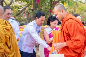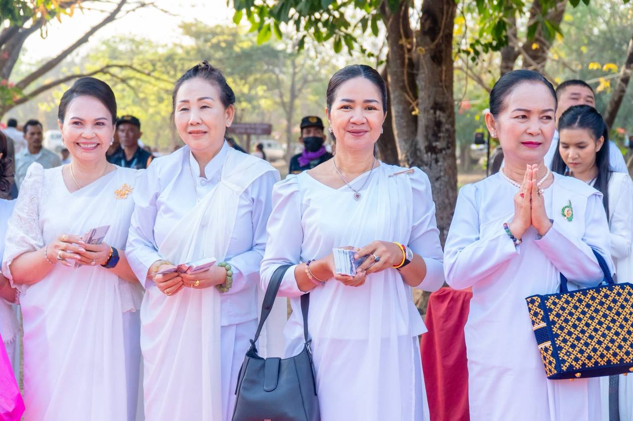 ពិធីនេះក្រោមអធិបតីភាពលោកជំទាវ ឧកញ៉ាសិរីករុណាបទុមរតន៍អគ្គមហាឧបាសិកាពុទ្ធសាសនូបត្ថម្ភម៉ៅ ម៉ាល័យ និងលោកស្រី កែ សួនសុភី ប្រធានកិត្តិយសក្រុមការងារយេនឌ័រ ក្រសួងមហាផ្ទៃ ព្រមទាំង មានការអញ្ជេីញចូលរួមពីលោក អ៊ុំ រាត្រី អភិបាល នៃគណៈអភិបាលខេត្តបន្ទាយមានជ័យនិងមន្ត្រីថ្នាក់ដឹកនាំ មន្ត្រីរាជការ កងកម្លាំង ប្រជាពលរដ្ឋ ពុទ្ធ បរិស័ទ ប្រារព្ធ ធ្វើ ឡើង បរិវេណប្រាសាទបន្ទាយឆ្មារឃុំបន្ទាយឆ្មារស្រុកថ្មពួក ។
