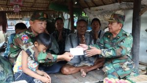 ឧត្តមសេនីយ៍ទោសោម ស៊ុនបានប្រគល់ស្បៀងអាហារគ្រឿងឧបភោគបរិភោគ ភេសជ្ជៈ សម្ភារៈប្រើប្រាស់ និងថវិកាមួយចំនួន ដែលជាអំណោយរបស់សម្ដេចមហាបវរអធិបតីហ៊ុនម៉ាណែតនិងលោកជំទាវ ជូនលោកពលបាលត្រី គង់ លីហូវ និងក្រុមគ្រួសារ ដើម្បីជួយដោះស្រាយនូវរាល់ការលំបាកក្នុងជីវភាពក្រុមគ្រួសារផងដែរ និងសម្រាប់ដោះស្រាយក្នុងការព្យាបាលជំងឺផងដែរ ។