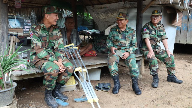 (កំពង់ធំ)÷ ដោយអនុវត្តតាម បទបញ្ជារបស់ឯកឧត្តមទេសរដ្ឋមន្ត្រីនាយឧត្តមសេនីយ៍ កិតិសឹង្គហៈបបណ្ឌិតគន់ គីម អនុប្រធាន និងជាអគ្គលេខាធិការសមាគមអតីតយុទ្ធជនកម្ពុជា។ នៅរសៀលថ្ងៃទី៣០ ខែសីហា ឆ្នាំ ២០២៥ ឧត្តមសេនីយ៍ទោសោមស៊ុន មេបញ្ជាការតំបន់ប្រតិបត្តិការសឹករងកំពង់ធំ បានដឹកនាំសហការី ទៅសំណេះសំណាលសាកសួរសុខទុក្ខ លោកពលបាលត្រី គង់ លីហូវ នៅអង្គភាព កងពលតូចលេខ ៦ ចំណុះកងពលធំអន្តរាគមន៍លេខ ២ ប្រចាំការនៅខេត្តឧត្តរមានជ័យ ដែលមានជំងឺប្រចាំកាយ មកសម្រាកព្យាបាលនៅមន្ទីរពេទ្យនៅខាងក្រោយ ហើយគ្រួសារមានជីវភាពលំបាកខ្វះខាត ដោយឪពុកជាជនពិការ ហើយ ម្ដាយនិងភរិយាមាន មានកូនតូចៗជាច្រើននាក់នៅក្នុងបន្ទុក ដោយបានប្រកបមុខរបរលក់ដូរម្ហូបអាហារបន្តិចបន្តួច នៅជេីងភ្នំសន្ទុក សម្រាប់ចិញ្ចឹមជីវិត ស្ថិតនៅក្នុងភូមិសំណាក ឃុំកកោះ ស្រុកសន្ទុក ខេត្តកំពង់ធំ ។