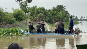 ខេត្តកំពង់ឆ្នាំង ៖ កម្លាំងតំបន់ប្រតិបត្តិការសឹករងកំពង់ឆ្នាំង ដឹកនាំដោយ លោក វរសេនីយ៍ទោ ម៉ៅ វ៉េ មេបញ្ជាការរង សហការជាមួយកម្លាំងកងពលតូចលេខ៧០ ដឹកនាំដោយ លោក ឧត្តមសេនីយ៍ត្រី មួង ណូរ៉ា នាយសេនាធិការរង បានប្រតិបត្តិការបង្ក្រាបបទល្មើសនេសាទ ហ៊ុំសម្រាស់ ដោយប្រើម៉ាស៊ីនខ្យល់ និងឃាត់ខ្លួនបានជនប្រព្រឹត្តជាច្រើននាក់។