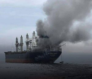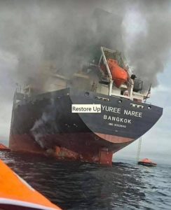 ដោយ : ភ្នំធំ / អ៊ីរ៉ង់៖ កប៉ាល់ដឹកទំនិញថៃមួយគ្រឿងកាលពីថ្ងៃទី១១មីនាឆ្នាំ២០២៦ បានឆេះនៅច្រកសមុទ្រហ័រម៉ូស( Hormuz ) នៅមជ្ឈឹមបូព៌ាបន្ទាប់ពីត្រូវបានវាយប្រហារដោយគ្រាប់ផ្លោងចេញពីឆ្នេរសមុទ្ររបស់ប្រទេសអ៊ីរ៉ង់ ដែលបង្ខំឱ្យនាវិកបោះបង់ចោលនាវា។