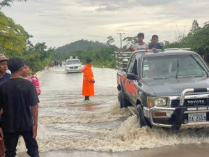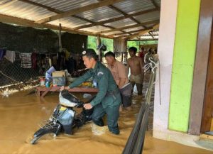 លោកនាយប៉ុស្តិ៍នគរបាលរដ្ឋបាលឃុំតាសាញ កាលពីព្រឹកថ្ងៃទី៣១ ខែ សីហាឆ្នាំ២០២៥ បានដឹកនាំកម្លាំងចុះជួយសម្រួល ការ ធ្វើ ដំណើរ ឆ្លងកាត់ របស់ ប្រជាពលរដ្ឋ នៅលើផ្លូវជាតិលេខ៥៧.៧ ចំណុចភូមិតាសាញត្បូង ឃុំតាសាញ ស្រុកសំឡូតខេត្ត បាត់ដំបង ។គឺខណៈ ទឹកភ្លៀងបាននឹងកំពុង ជន់ខ្លាំងហើយបានលិចហូរកាត់ថ្នល់ប្រវែងប្រមាណ៥០០ម៉ែត្រ។