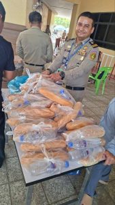 ក្នុងនោះ ក័ព្រមទាំងបានជួយដឹកជញ្ជូន ចែកនំប៉័ង ទឹកសុទ្ធ ដល់ពួកគាត់ក្នុងម្នាក់នំប៉័ង ០១ដើម និងទឹកសុទ្ធ ០១ដប គ្រប់ៗគ្នា ។