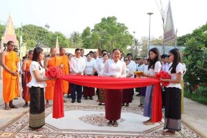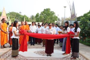 ជំទាវបន្តថា ពិធីកាត់ខ្សែបូសម្ពោធឆ្លងសមិទ្ធផលនានា នាពេលនេះ បានឆ្លុះបញ្ចាំងឲ្យឃើញអំពីវឌ្ឍនភាព ជំនឿសាសនា និងការគោរពប្រណិប័តដ៏ជ្រាលជ្រៅ ចំពោះវិស័យព្រះពុទ្ធសាសនា ដែលជាសាសនារបស់រដ្ឋ ព្រមទាំងបង្ហាញឲ្យឃើញនូវស្មារតីសាមគ្គីភាព មិត្តភាព និងការគាំទ្ររបស់បងប្អូនប្រជាពលរដ្ឋយើងចំពោះកិច្ចខិតខំប្រឹងប្រែងរបស់រាជរដ្ឋាភិបាលក្នុងការអភិវឌ្ឍប្រទេសជាតិទាំងផ្នែកពុទ្ធចក្រ និងអាណាចក្រប្រកបដោយភាពសុខដុមរមនា ដែលមិនអាចកាត់ផ្តាច់ពីគ្នាបានឡើយ។
