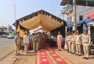 (កំពង់ធំ)៖ អនុវត្តតាមការចង្អុលបង្ហាញពី ឯកឧត្ដម នាយឧត្ដមសេនីយ៍ ស ថេត អគ្គស្នងការនគរបាលជាតិ នៅព្រឹកថ្ងៃទី២២ ខែមេសា ឆ្នាំ២០២៦ លោកឧត្តម ហេង សុផល ស្នងការនគរបាលខេត្តកំពង់ធំ បានដឹកនាំកងកម្លាំងអញ្ជើញគោរពវិញ្ញាណក្ខន្ធ និងបំពាក់ឋានន្តរស័ក្តិថ្នាក់ “វរសេនីយ៍ត្រី” ជាកិច្ចបច្ឆាមរណៈ ជូនសពលោកអនុសេនីយ៍ឯក ញ៉ែម វុទ្ធី នាយរងផ្នែកសន្តិសុខ នៃអធិការដ្ឋាននគរបាលស្រុកតាំងគោក។