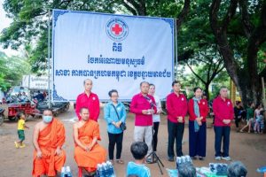 លោកអ៊ុំ រាត្រី អភិបាលខេត្តបន្ទាយមានជ័យនិងជាប្រធានគណ:កម្មាធិការសាខាកាកបាទក្រហកម្ពុជាខេត្តបានមានប្រសាសន៍ផ្តាំផ្ញើសារសួរសុខទុក្ខពីសំណាក់សម្តេចកិត្តិព្រឹទ្ធបណ្ឌិត ប៊ុន រ៉ានីហ៊ុនសែនប្រធានកាកបាទក្រហមនិងលោកជំទាវ បណ្ឌិត ពេជ្រ ច័ន្ទមុនី ហ៊ុនម៉ាណែត អនុប្រធានអចិន្ត្រៃយ៍កាកបាទក្រហមកម្ពុជា ជានិច្ចកាលសម្តេចនិងលោកជំទាវ បណ្ឌិតតែងតែគិតគូរពីសុខទុក្ខរបស់បងប្អូន ដោយមិនទុកឲ្យនរណាម្នាក់ស្លាប់ដោយអត់អាហារនោះឡើយ ។