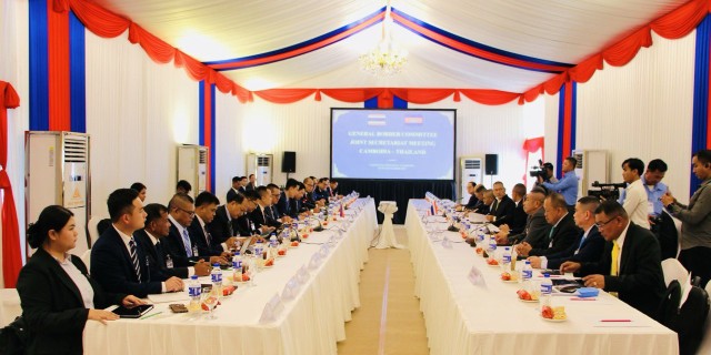 ដោយ : ភ្នំធំ / កោះកុង:ក្រុមលេខាធិការគណៈកម្មាធិការព្រំដែនទូទៅ (GBC) កម្ពុជា-ថៃ បានជួបប្រជុំគ្នារយៈពេល៣ថ្ងៃ( ពីថ្ងៃទី ៧ ដល់ថ្ងៃទី ៩ ខែកញ្ញាឆ្នាំ២០២៥) នៅសាលាមហោស្រពនាក្រុងខេមរ:ភូមិន្ទខេត្តកោះកុង ដោយកិច្ចពិភាក្សាផ្តោតលើភាពដ៏ចម្រូងសម្រាស់និងតាមតឹងខ្លាំងនៅភូមិណងចាន់ឃុំ/ស្រុកគោកស៊ូងខេត្តស្រះកែវ ខាងភាគីថៃ ឬភូមិជោគជ័យឃុំអូរបីជាន់ស្រុកអូរជ្រៅខេត្តបន្ទា៦មានជ័យ.ខាងភាគីកម្ពុជា ។